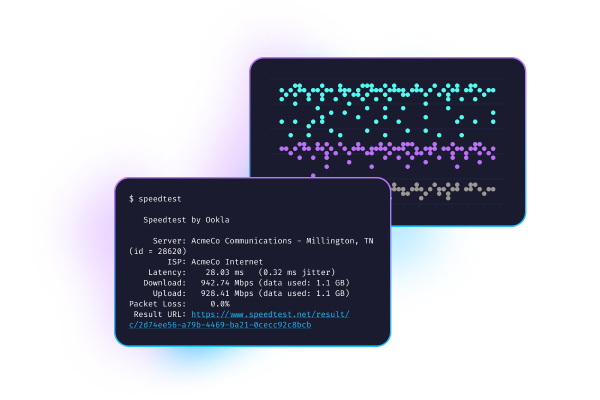 Speedtest CLI transfère directement toute la puissance de la technologie Speedtest et de son immense réseau mondial de serveurs au niveau de la ligne de commande. Spécialement conçu pour les développeurs, les administrateurs système et les passionnés d'informatique, Speedtest CLI constitue la toute première application Speedtest native Linux signée Ookla®.
